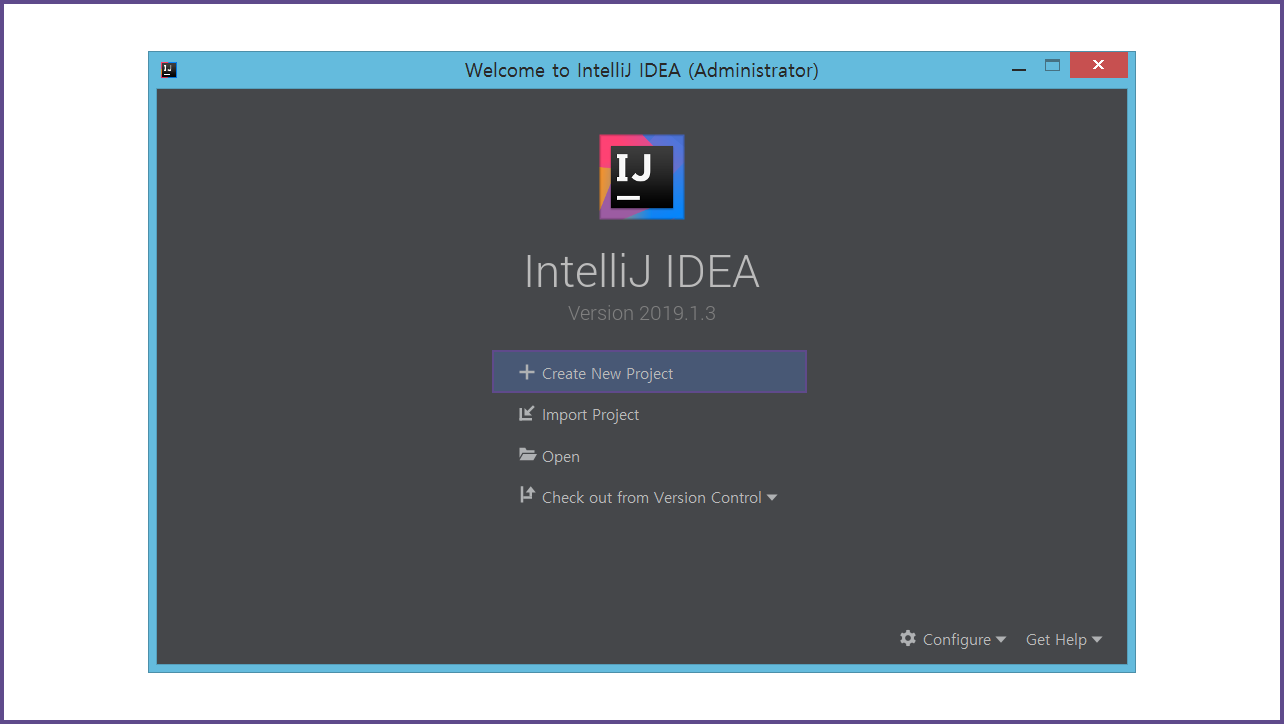 IntelliJ를 실행하여 Create New Project를 클릭합니다.