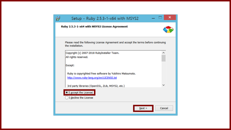 ・ Winodws에서 설치하기 위해 RubyInstaller를 이용하겠습니다.