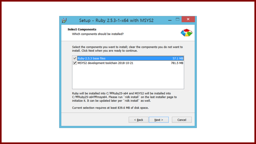 무슨 말인지는 잘 모르겠지만, 저는 말을 잘 들으니까 Ruby + Devkit 2.5.3을 설치하겠습니다.