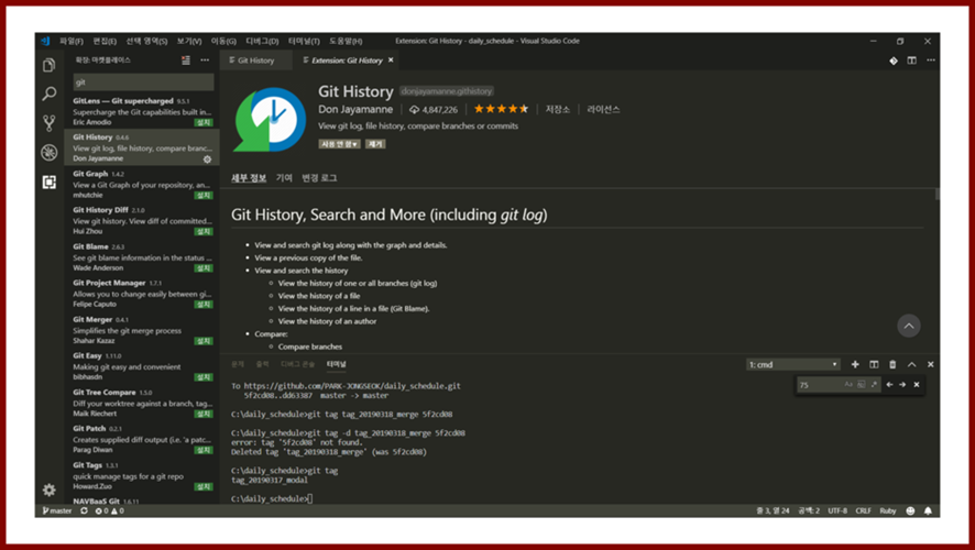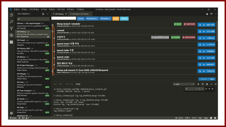 ・ 형상 관리를 Git으로 하신다면, Git History를 추천드립니다.