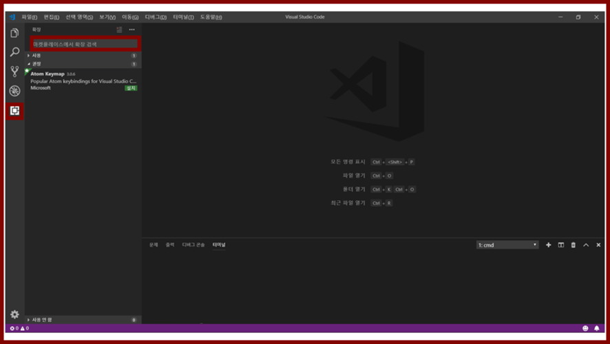 ・ 기본적으로, VSCode의 확장 기능을 이용할 것이기 때문에, 위의 그림에서 처럼 확장 탭을 클릭하고 검색을!