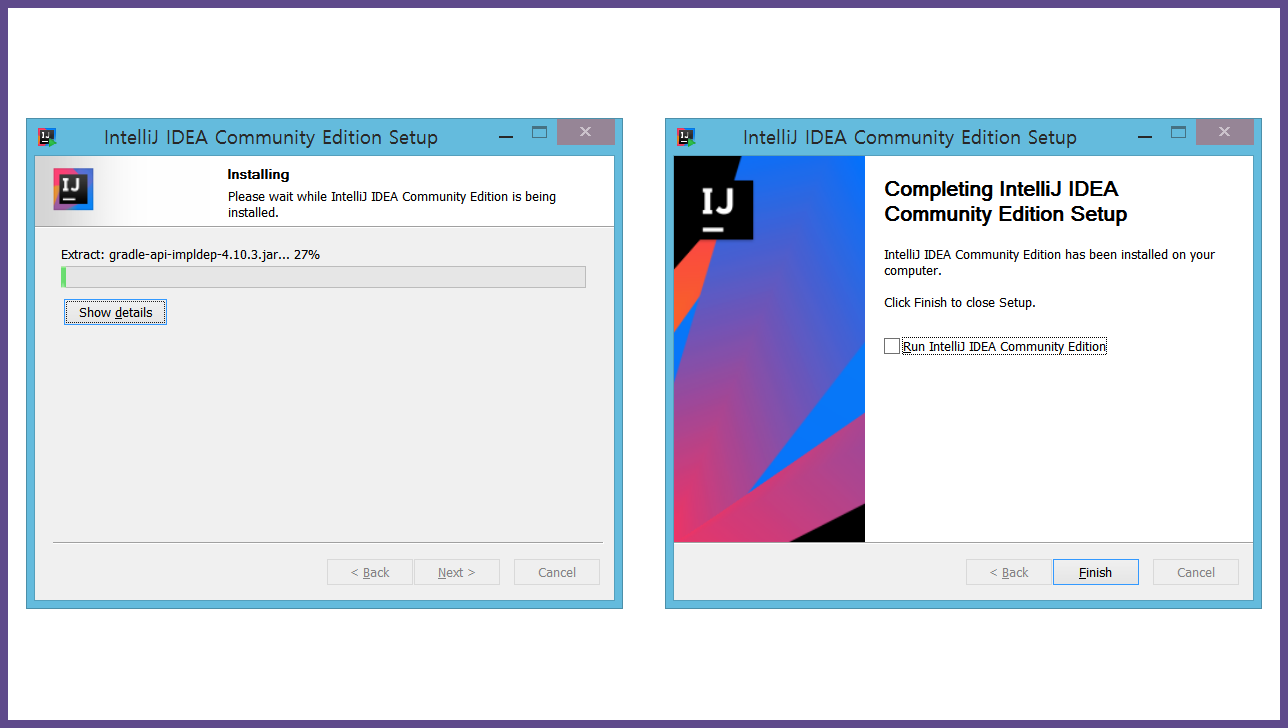 Run IntelliJ IDEA Community Edition에 체크를 하여 실행해보아요.