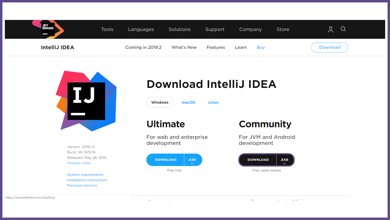 ・ IntelliJ 공식 홈페이지에 접속합니다.