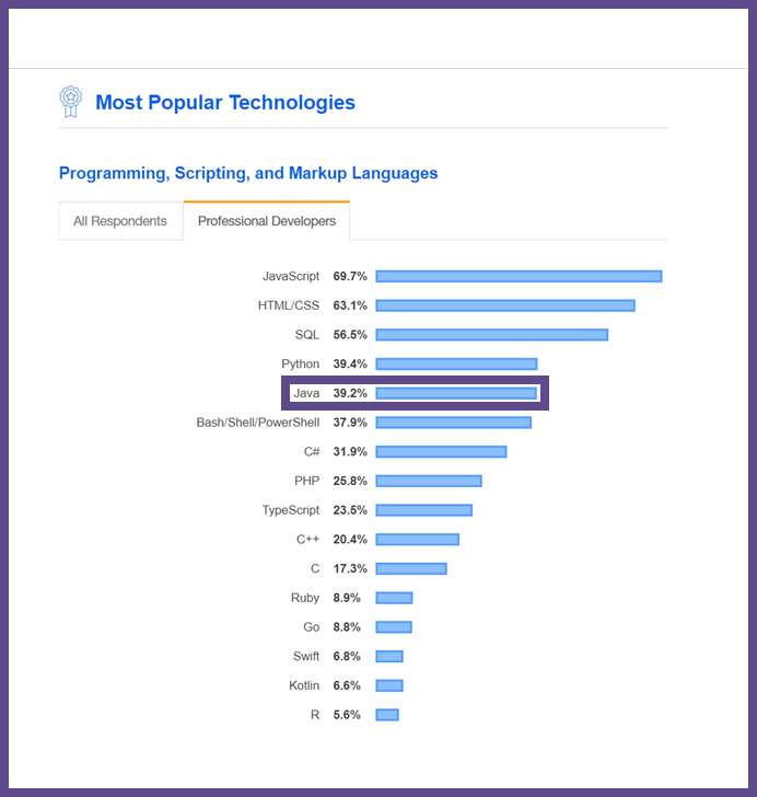 ・ StackOverflow의 2019년의 Developer Survey Results에서는 가장 인기 있는 언어에서 5등을 했습니다!