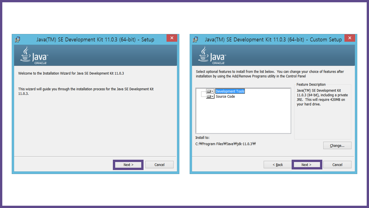 다운로드하신 후, 별 어려움 없이 JAVA를 설치할 수 있습니다.